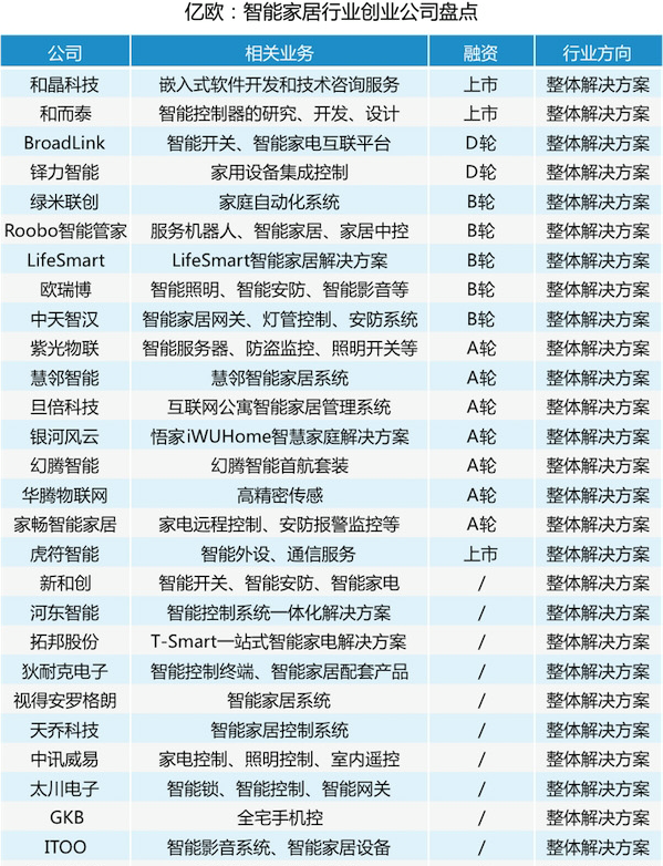 为此,亿欧家居整理了115家智能家居行业的创业公司名单,想看看现在的智能家居行业玩家都在做什么,他们又有怎么样的思路和想法,发现智能家居行业中某些垂直领域竞争激烈,已然成为一片红海,更多场景化的垂直领域涌现出来,智能家居场景更加丰富、完善。