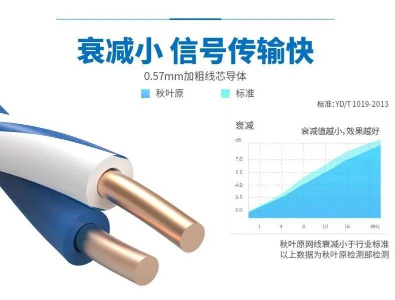 六类网线确定了一个新性能评价指标,采用规格23AWG/0.57mm直径的单芯裸铜为导体,芯线采用聚乙烯类高分子材料为绝缘介质,外被采用阻燃型高分子材料。还可以针对不同环境使用需求提供多种屏蔽、防水、低烟无卤阻燃等系列优质产品。