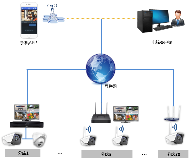 根据连锁门店监控的需求,结合自身产品特点,制定如下解决方案: