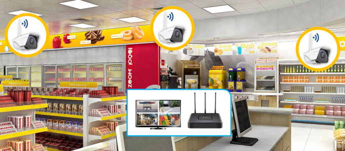 APP和电脑客户端可以支持管理录像机、摄像头、无线IPC等一系列设备。以连锁便利店为例,可以根据店铺的面积、货架密集度和装修效果使用不同的设备。