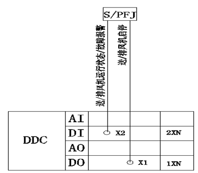 本工程将对地下二层娱乐室和地下一层的储藏间供2台吊顶式新风机组进行实时监控。