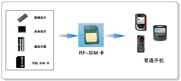 手机一卡通(RFID-SIM一卡通)是将无线射频模块嵌入到手机SIM卡中,从而使SIM卡同时具有射频识别卡的功能,使手机可以与读卡设备之间进行感应式式数据交换。这样,用户不必更换手机,除了原来的SIM卡通讯功能外,还能实现各种支付操作及身份认证。