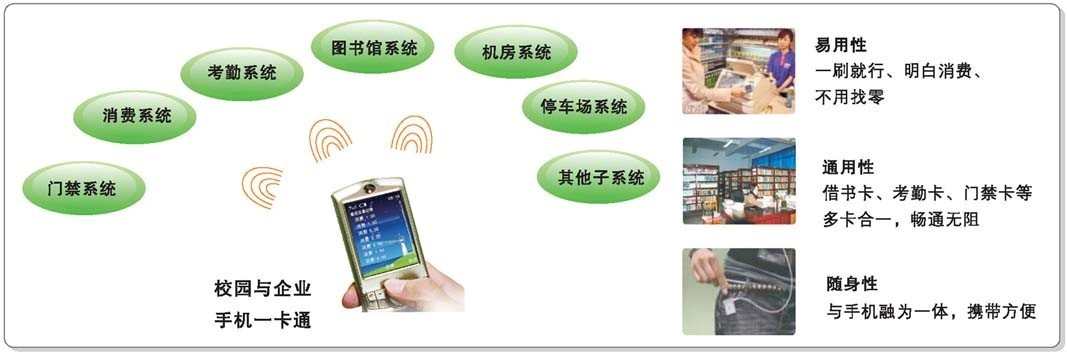 一卡通与手机的结合,使一卡通系统功能更强大,使用领域更广 泛;