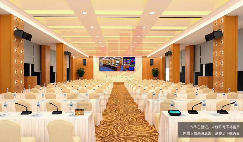 多功能厅厅扩声系统参考国家扩声厅级标准一级进行设计,系统主要由扬声器、功率放大器、音频处理设备、调音台、话筒、音源等设备组成。