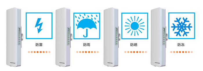 安防监控职责重大出不得一点差错,作为工程画面传输的工具,WIFI的持续稳定性是监控工程商首要考虑的问题。而WIFI的稳定性除了电信运营商本身的问题以外,体现就在WIFI设备的性能上。本方案所涉及的所有户外产品都经过严格检验与测试,在三抗五防方面已做到极致,特别在防雷功能上所采用的双重防雷机制,彻底杜绝户外设备被雷击的隐患。