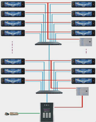 单元楼栋是小区的基本组成部分,是数字楼宇对讲系统的主要组成部分。单元门口设置数字对讲主机一台,用于实现业主及访客的呼叫可视对讲及门禁开锁功能,有地下停车场的可根据现场情况设置一台数字对讲主机,便于业主及访客的出入管理。楼栋内部的网络架构根据楼栋的高度、每层住户数量的不同,需根据实际情况进行设计配置。
